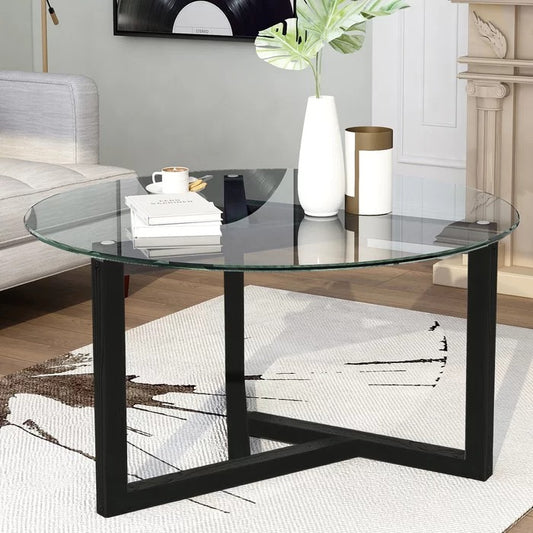 Coffee Table: Solid Wood & Glass Frame Coffee Table