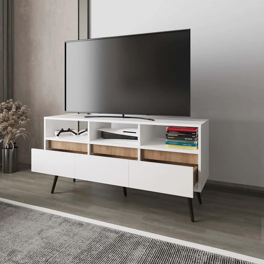 tv panel: Charming tv panel with Multiple Drawers and Shelves for Organized Entertainment