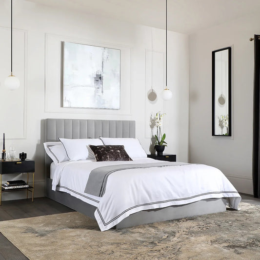 Double Bed: Grey Velvet Double Bed