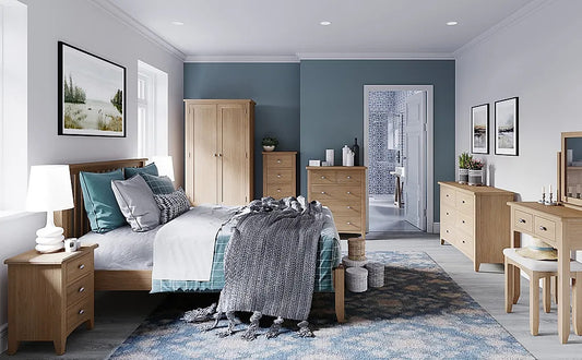 King Size Bed: Painted Grey and Oak Wooden King Size Bed
