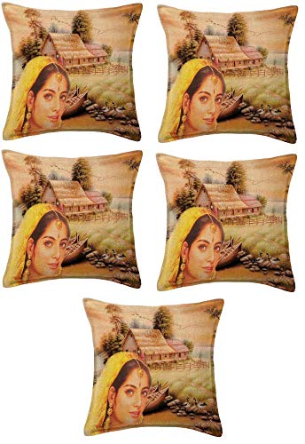 Cushion Cover: Jute 150 TC Cushion Cover, 24 x 24 Inch, Multicolour, 5 Pieces
