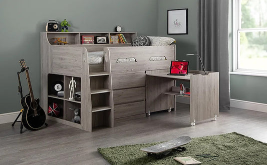 Single Bed: Grey Midsleeper with Storage and Desk Single Bed