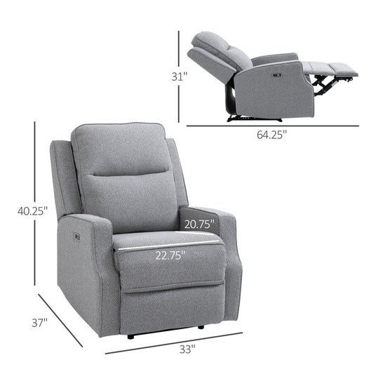Alzena Grey Fabric Upholstered Recliner Chair/Armchair Sofa With Retract-able Footrest