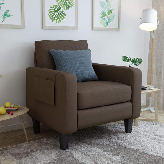 Sofa Chair: Armchair Upholstered Single Chair Fabric Sofa for Living Room, Office, (Brown)