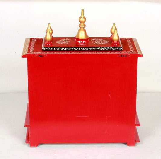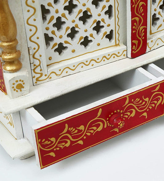 Mandir: Rajasthani Ethnic Handcrafted Wooden Temple/Mandir/Pooja Ghar/Mandapam Jali Gate White Red 18x9x21 inch