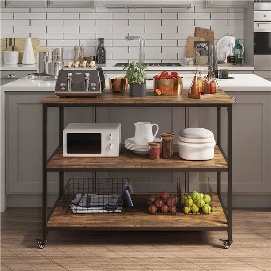 Kitchen Island: 47.5'' Iron Kitchen Island with Locking Wheels