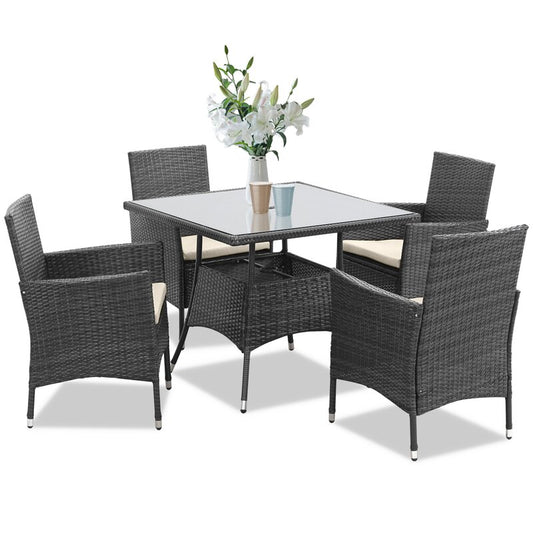 Dining Set: Rubberwood Solid Wood 4 Seater Breakfast Nook Dining Set