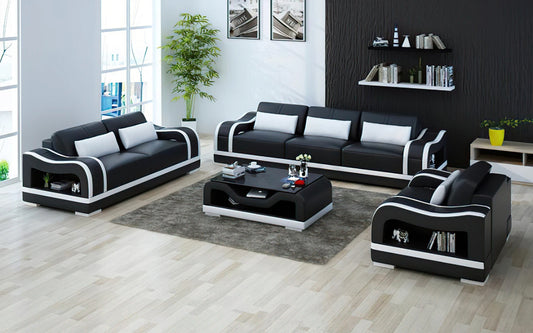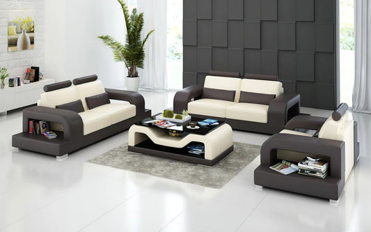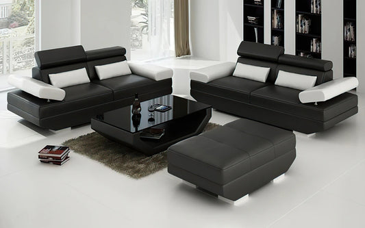 Modern Sofa Set: Leatherette Sofa Set With Ottoman