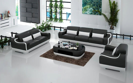 Modern Sofa Set: 5 Seater Leatherette Sofa Set with Adjustable Headrest