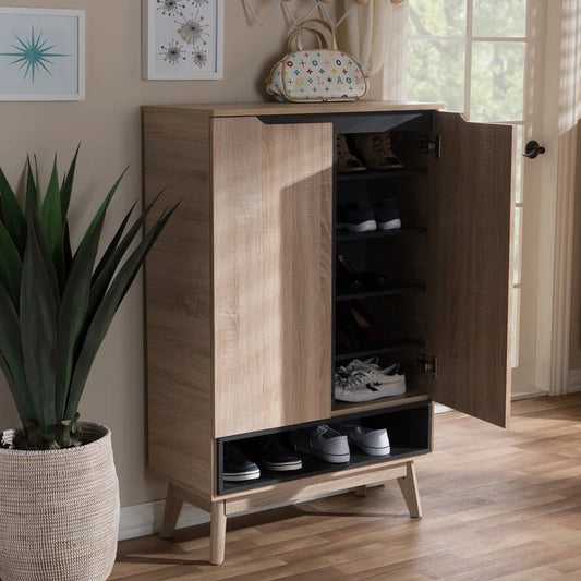 Shoe Rack: Modern and Contemporary 2 Door Wood Entryway 15 Pair Shoe Storage Cabinet