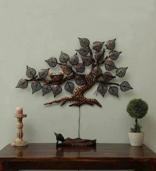 Wall Art: Iron Decorative Tree Wall Decor With LED In Brown