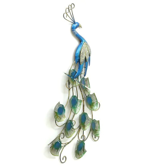 Wall Art : Wrought Iron Peocock Wall Art With LED In Blue