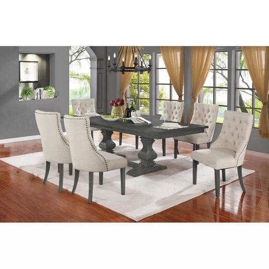 Dining Set: Dining Table with 6 Chairs Rubberwood Solid Wood Dining Set