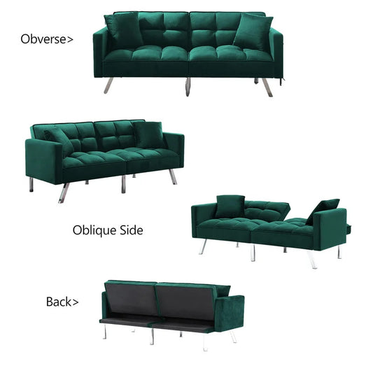 Futon: 68.5'' Wide Velvet Convertible Sofa