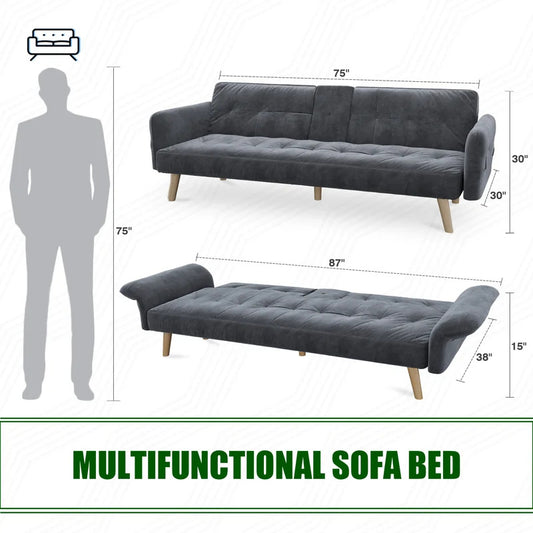 Futon: 74.8'' Wide Velvet Convertible Sofa