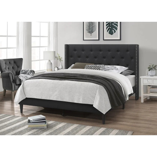 Queen Size Bed : Tufted Upholstered Platform Bed