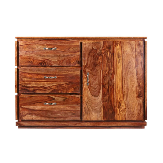 Sheesham Furniture:- One Door Three Drawer Chest Of Drawers Side Board