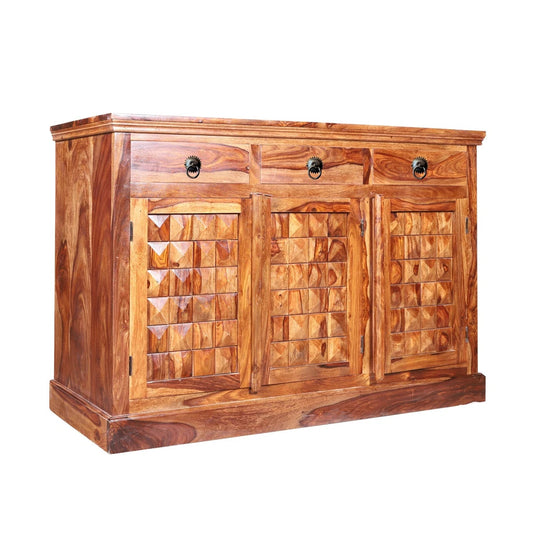 Sheesham Furniture:- Three Door Three Drawer Chest Of Drawers Side Board, Cupboard