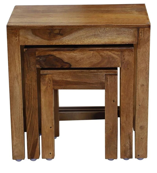Sheesham Furniture :- Solid Wood Set of Three End Table in Honey Oak Finished