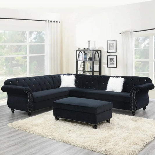 7 Seater Sofa Set: 130" Wide Symmetrical Corner Velvet Sectional Sofa