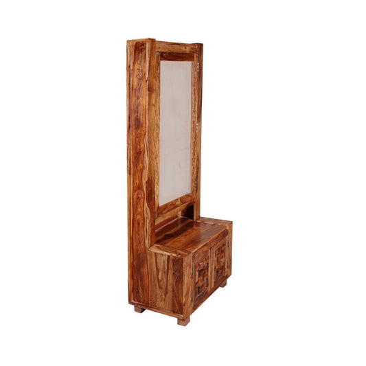 Sheesham Furniture :- Solid Wood Two Door Dressing Mirror with Hidden Storage