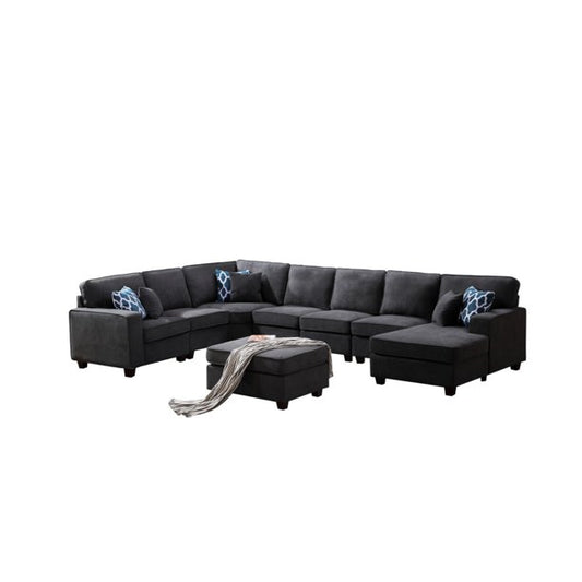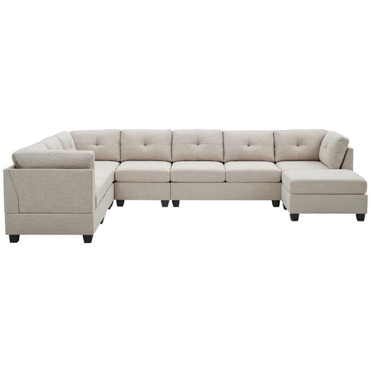 U Shape Sofa Set: 135" Wide Linen Symmetrical Sectional 11 Seater Sofa