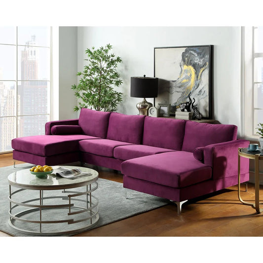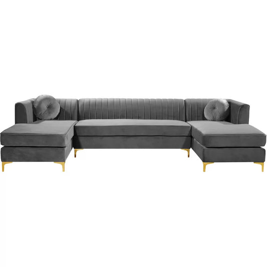 U Shape Sofa Set: 132" Wide Velvet Symmetrical Modular 6 Seater Sofa