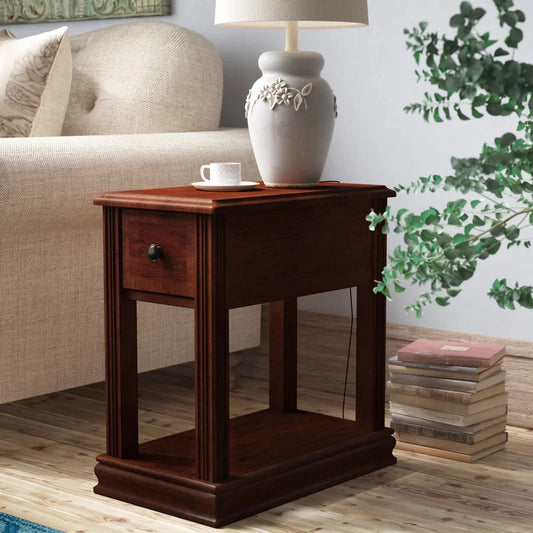 End Tables: Solid Wood 3 Legs End Table with Storage