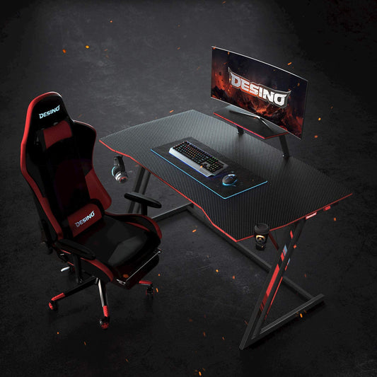 Computer Table : L Shaped Gaming Desk, Home Office Desk with Round Corner Computer table