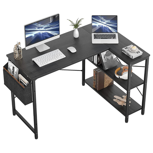 Study Table: L-Shaped Desk with Reversible Storage Shelves