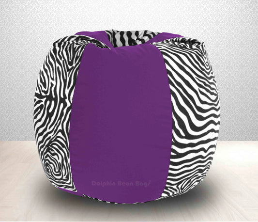 Bean Bag : 3XL Purple/Zebra(Blk-White)-FABRIC-FILLED & WASHABLE (with Beans)