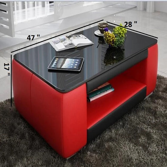 Leatherette Coffee Table: Red and Black Leatherette Coffee Table w/Black Glass