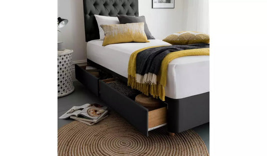Single Bed: Luxury Fabric 2 Drawer Single Divan Bed