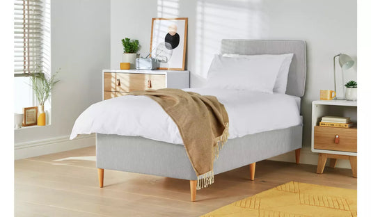 Single Bed: Fabric Single Divan Bed with Wooden feet