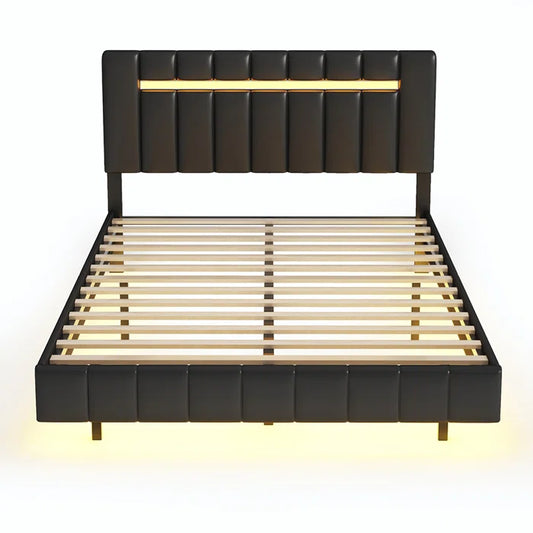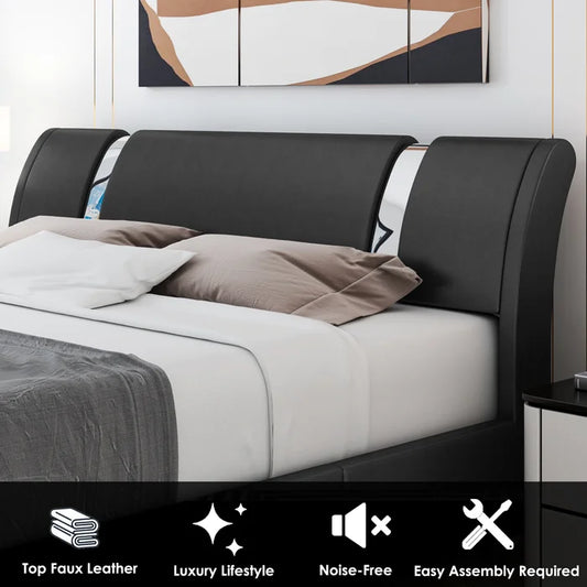 Hydrualic Bed: Atrayu Upholstered Lighted Headboard Platform Storage Bed