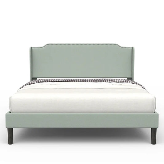 Divan Bed: Zanari Traditional Upholstered Low Profile Platform w/Wing Back/No Bed Skirt Needed/Soft Linen