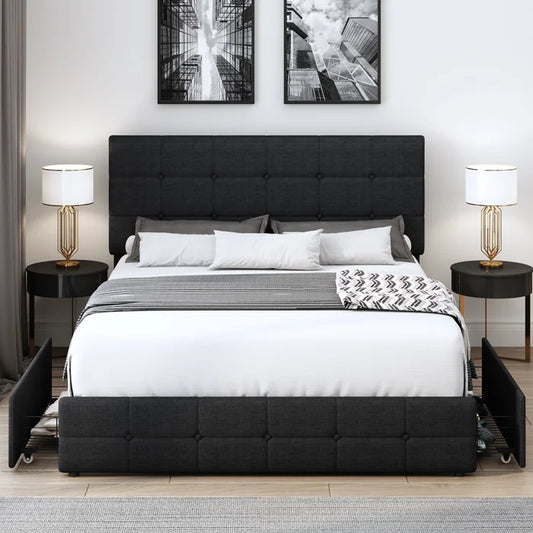 Hydraulic Bed: Binghamton Upholstered Platform Storage Bed with 2 drawers