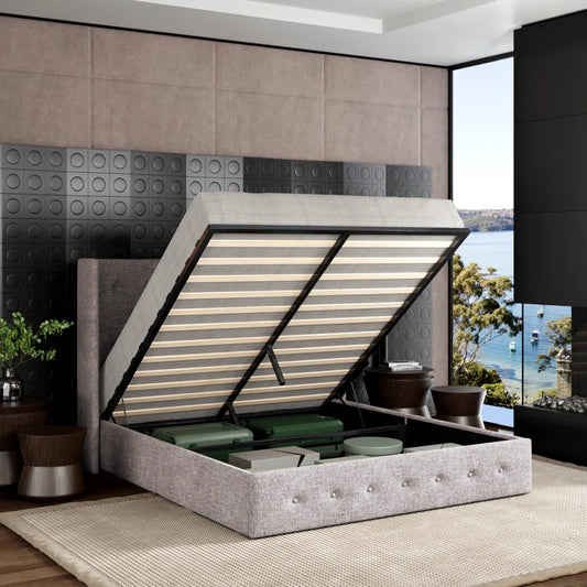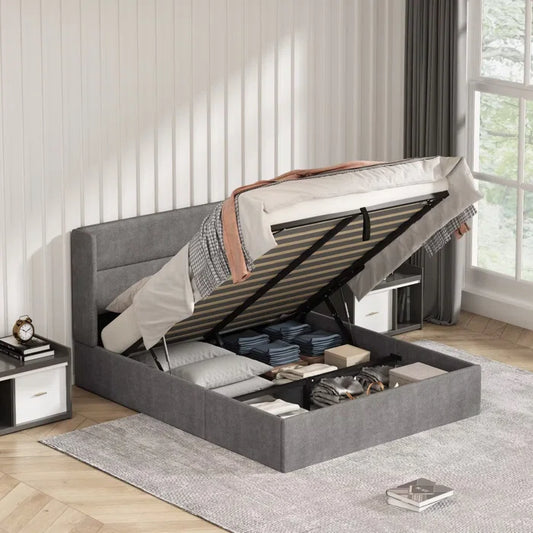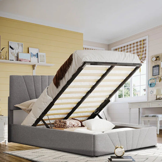 Hydraulic Bed: Upholstered Platform bed with a Hydraulic Storage System