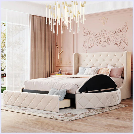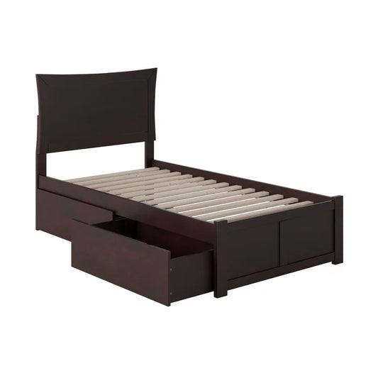 Divan Bed: Wells Solid Wood Storage Platform Bed with Footboard and Under Bed Drawers