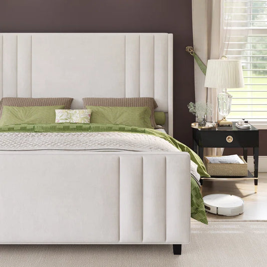 Divan Bed: Damion Velvet Upholstered Platform Bed with Vertical Channel Tufted Headboard