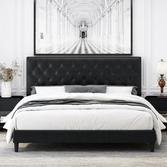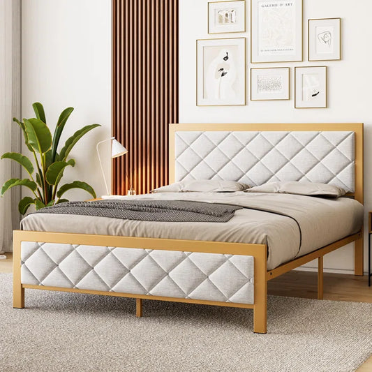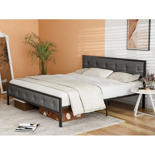 Queen Size Bed: Upholstered Bed with Adjustable Headboard