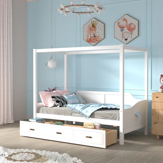 Poster Bed: Wooden Bed with Trundle