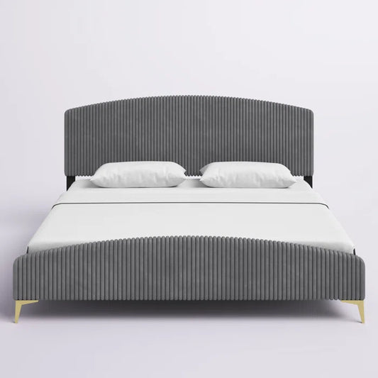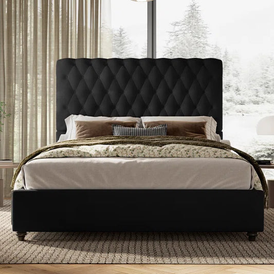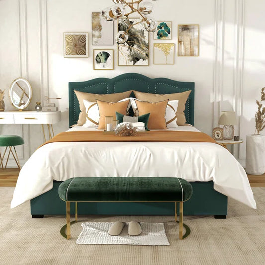 Queen Size Bed: Velvet Upholstered Platform Bed with Headboard