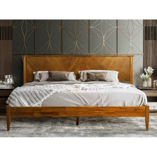 Divan Bed: Panthera Solid Wood Bed Frame with Artistic Patterned Headboard