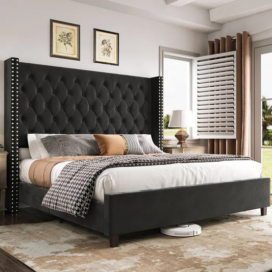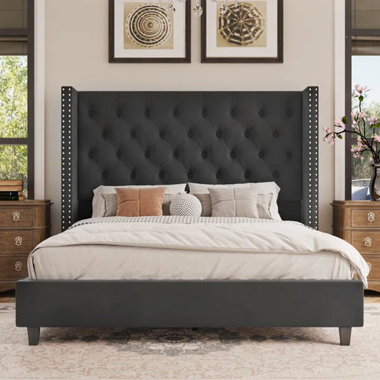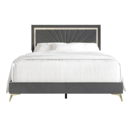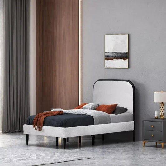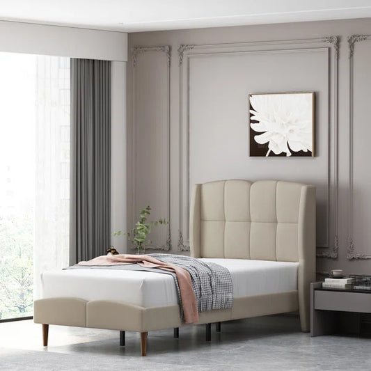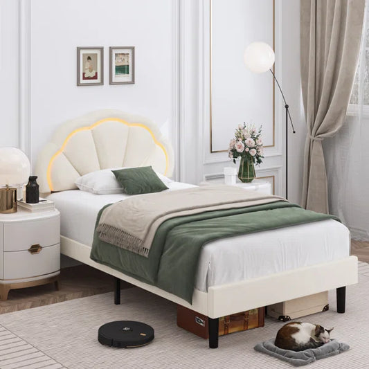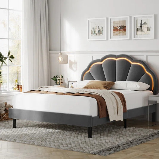 Queen Size Bed: Flower Silhouette Headboard Upholstered Platform Bed