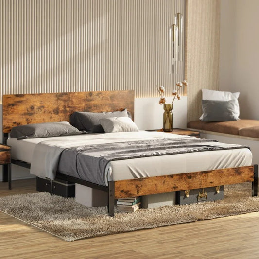 Queen Size Bed: Solid Wooden Bed