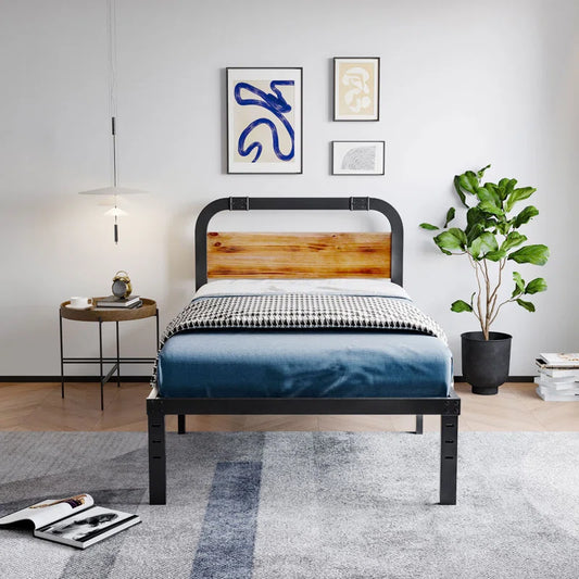 Single Bed: Wood and Black Metal Bed