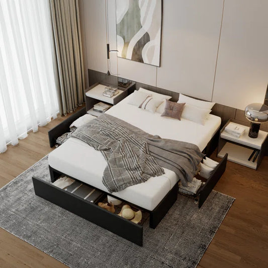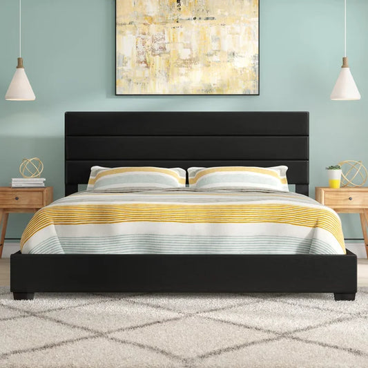Queen Size Bed: Black PU Leather Headboard and Footboard
