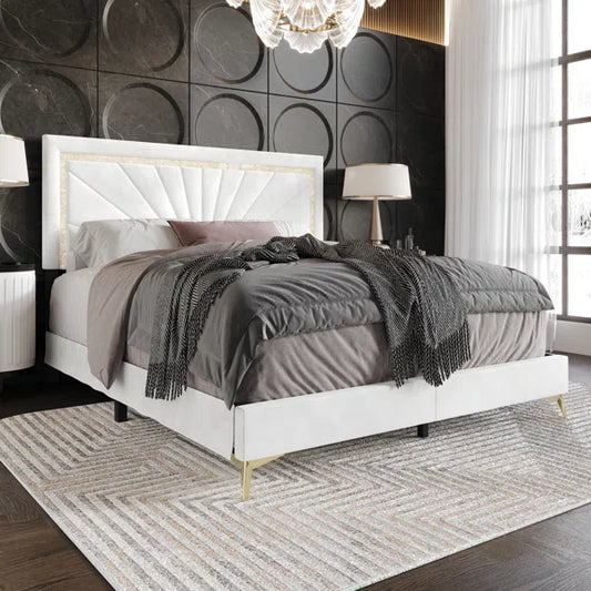 Divan Bed: Dimtry Upholstered Bed with LED Lights and USB Power Strips