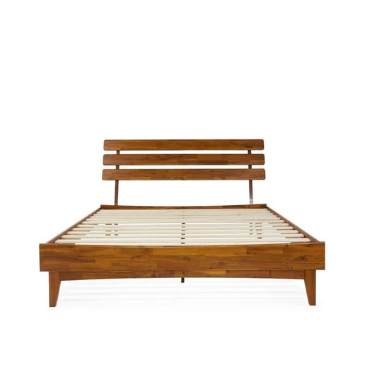 Queen Size Bed: Solid Wooden Bed Frame With Adjustable Headboard